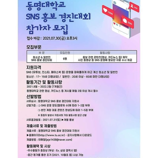청소년&일반인 동명대학교SNS홍보 경진대회 참가자 모집