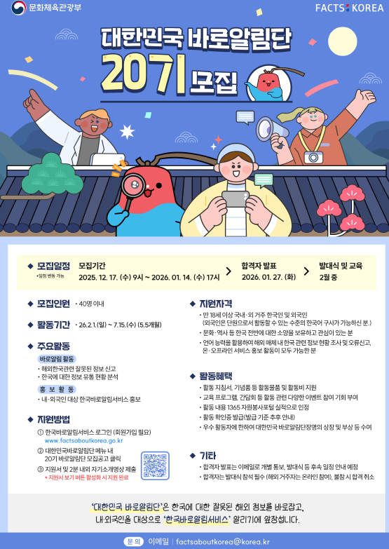 ㅇ (선발인원/합격자 발표) 40명 내외 / 2026년 1월 27일(화) * 발대식 2월 중 개최 예정