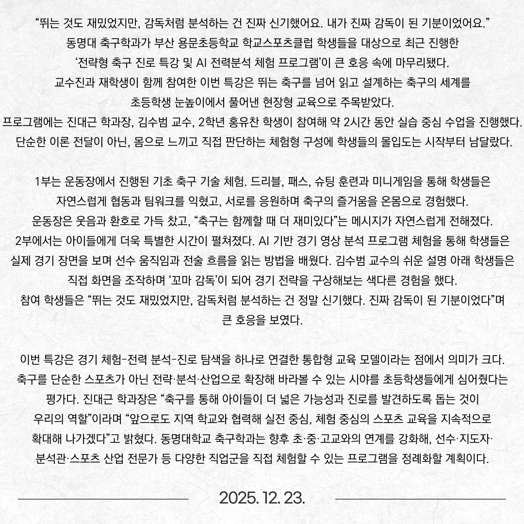 동명대 축구학과, 초등학교 운동장을 ‘전술 교실’로 바꾸다