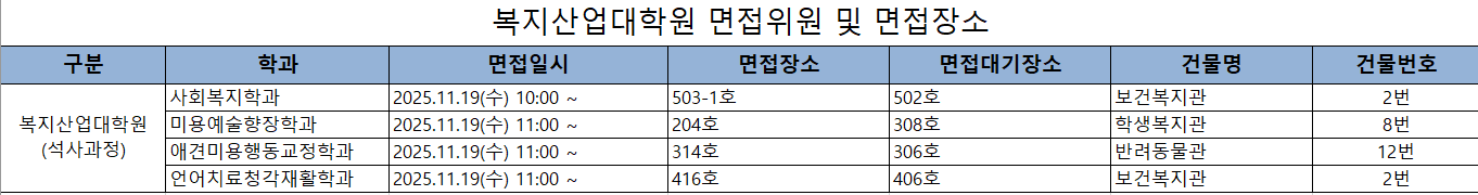 1. 면접일시 : 2025.11.19.(수) 학과별 지정 시간 및 장소